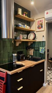 Студия функционально зонирована и оснащена всей необходимой техникой для комфортного проживания: Пылесос Dyson, телевизор, чайник, тостер, варочная панель на 3 комфорки, вытяжка. Встроенные - посудомоечная машина, СВЧ, духовой шкаф, холодильник. Стирально-сушильная машина, фен.