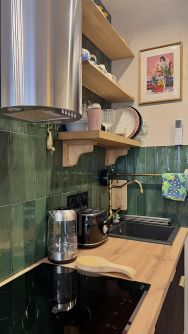 Продается уютная студия после капитального дизайнерского ремонта: полностью изменена отделка от ПИК, внутренние стены сделаны из бетонных блоков, возведена стена для зонирования спальной и кухонной зон. Стены отштукатурены и покрашены краской высокого качества, стены можно мыть. Дверь в санузел установлена анти-вандальная, шумопоглощающая.