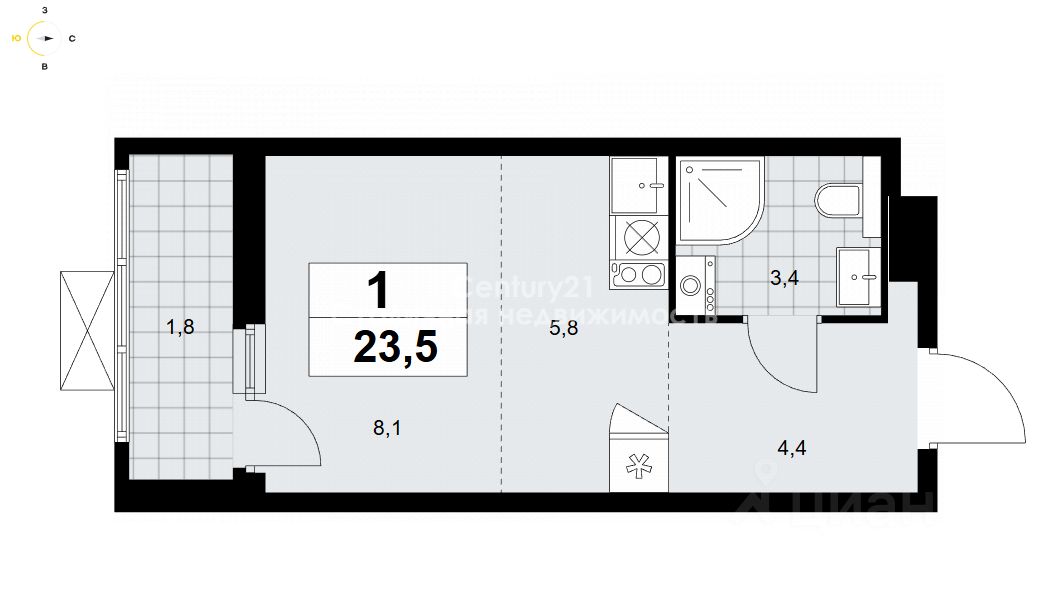 Арт. 131596690 Продается по переуступке студия, площадью 23,5 м2, в ЖК "Бунинские кварталы"!!!