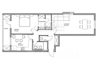 Общая площадь - 64,2 кв.м, большая гостиная 23 кв.м с двумя окнами, спальня 14 кв м, кухня - 9,5 кв. м. Окна квартиры выходят на 3 стороны света (В,З,Ю).