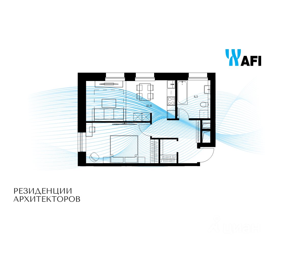 Продаются просторные 1-комнатные апартаменты общей площадью 49,3 м² на 13 этаже в сданном жилом квартале "Резиденции Архитекторов" вблизи с метро Электрозаводская и БКЛ Электрозаводская.
