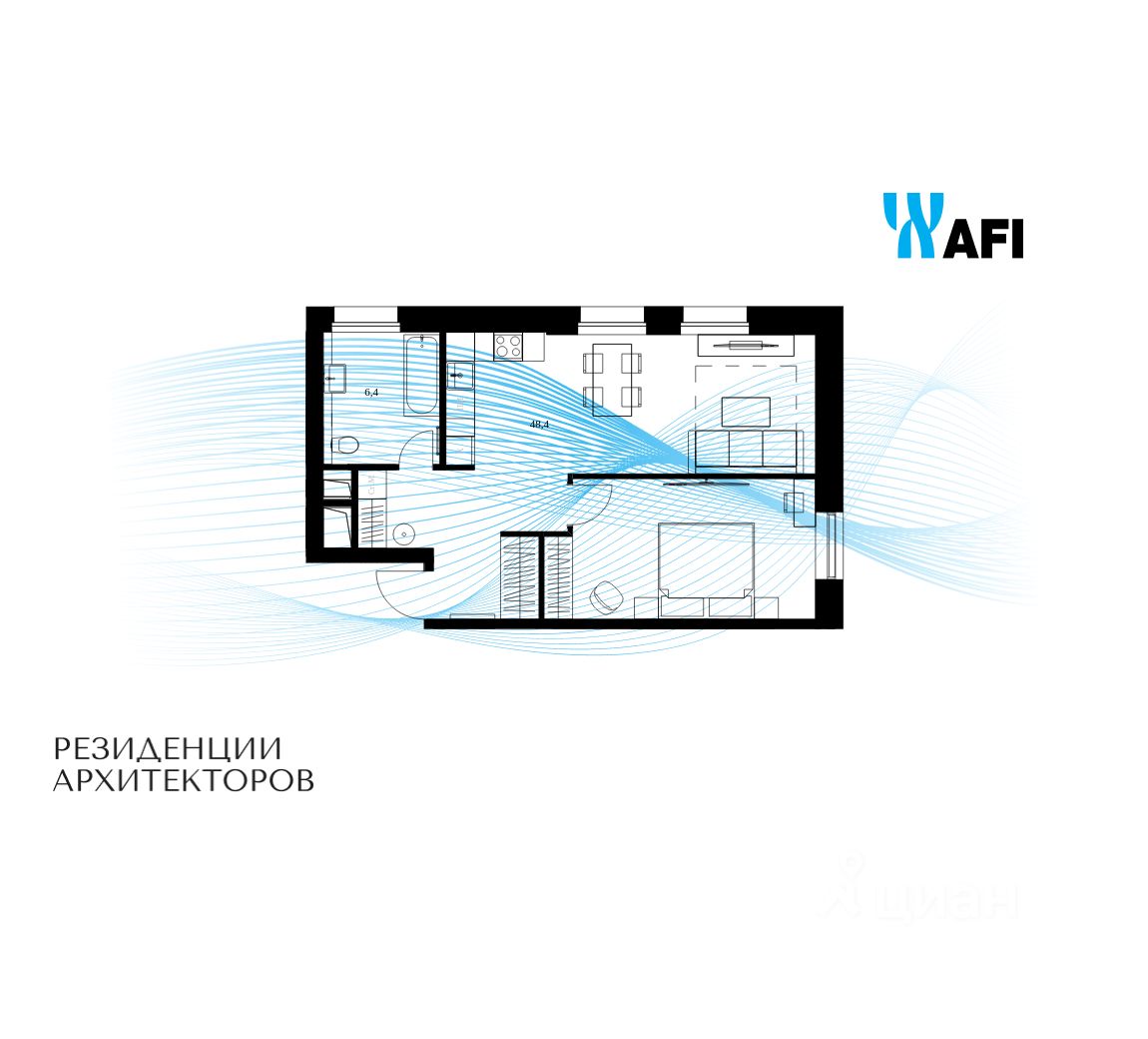 Продаются просторные 2-комнатные апартаменты общей площадью 54,8 м² на 5 этаже в сданном жилом квартале "Резиденции Архитекторов" вблизи с метро Электрозаводская и БКЛ Электрозаводская.