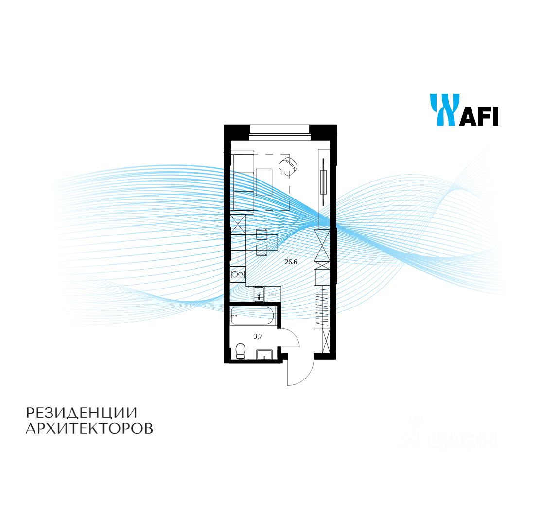 Продаются просторные апартаменты-студия общей площадью 30,3 м² на 11 этаже в сданном жилом квартале "Резиденции Архитекторов" вблизи с метро Электрозаводская и БКЛ Электрозаводская.