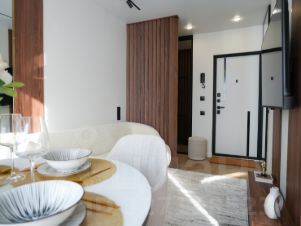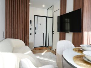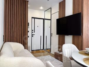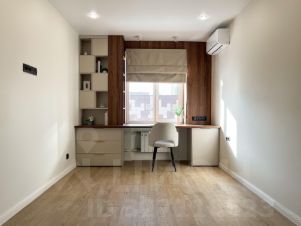 Полностью готова к проживанию: современный ремонт, мебель на заказ и укомплектованная техника.