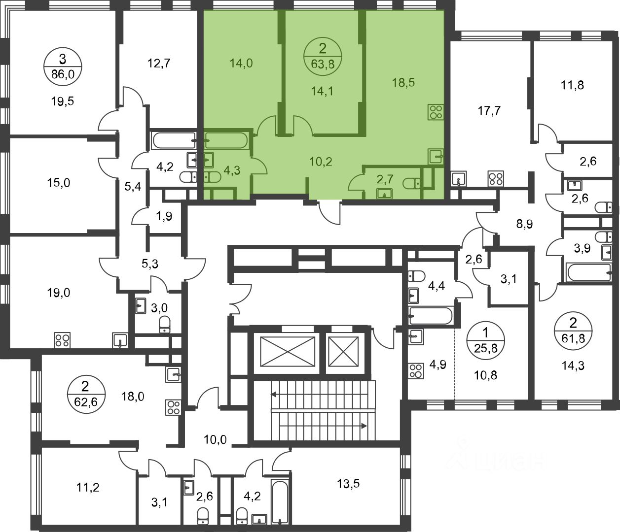 Общая площадь квартиры - 62 кв. м, этаж 14 из 17.