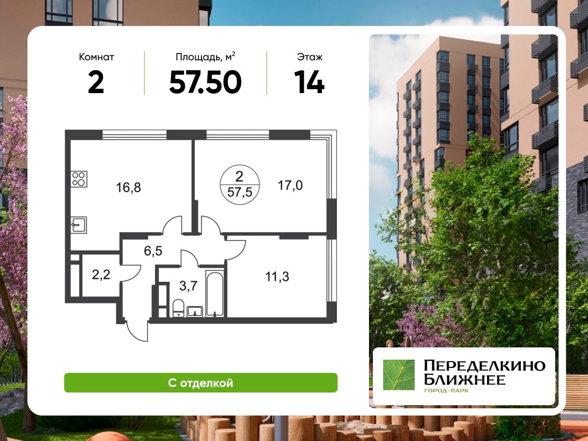 Продается двухкомнатная квартира с отделкой в городе-парке "Переделкино Ближнее".