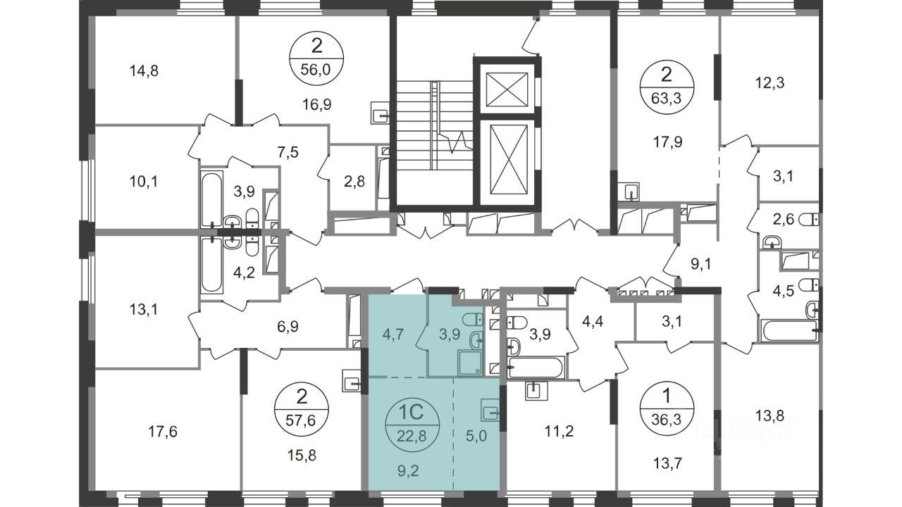 Общая площадь квартиры - 22,8 кв. м, этаж 13 из 19.