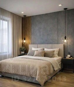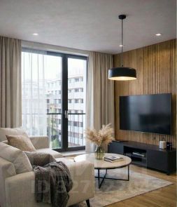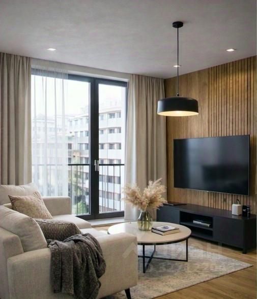 В апартаментах выполнен современный качественный ремонт в нейтральном стиле: светлые стены, аккуратное напольное покрытие, встроенное освещение, современная сантехника и готовая отделка санузла. Интерьер выдержан в актуальной минималистичной концепции, что позволяет заехать сразу без дополнительных вложений в ремонт и легко адаптировать пространство под себя.