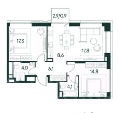 Потолки 3.1 м2. Кухня-гостиная 30 м2 . Квартира без отделки площадью 74 м² расположена на 5 этаже в корпусе Vivaldi, строение 7. Свободная продажа, без залогов, без обременений, первый собственник от застройщика.