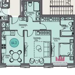 Продается двухкомнатная квартира, общей площадью 65 кв.м в жилом комплексе бизнес класса "Метрополия".