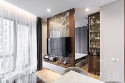 Высокие потолки, тёплые полы, подоконники из мрамора, сантехника Villeroy&Bosh, качественная шумоизоляция по всеми периметру, кондиционирование и система вентиляции.