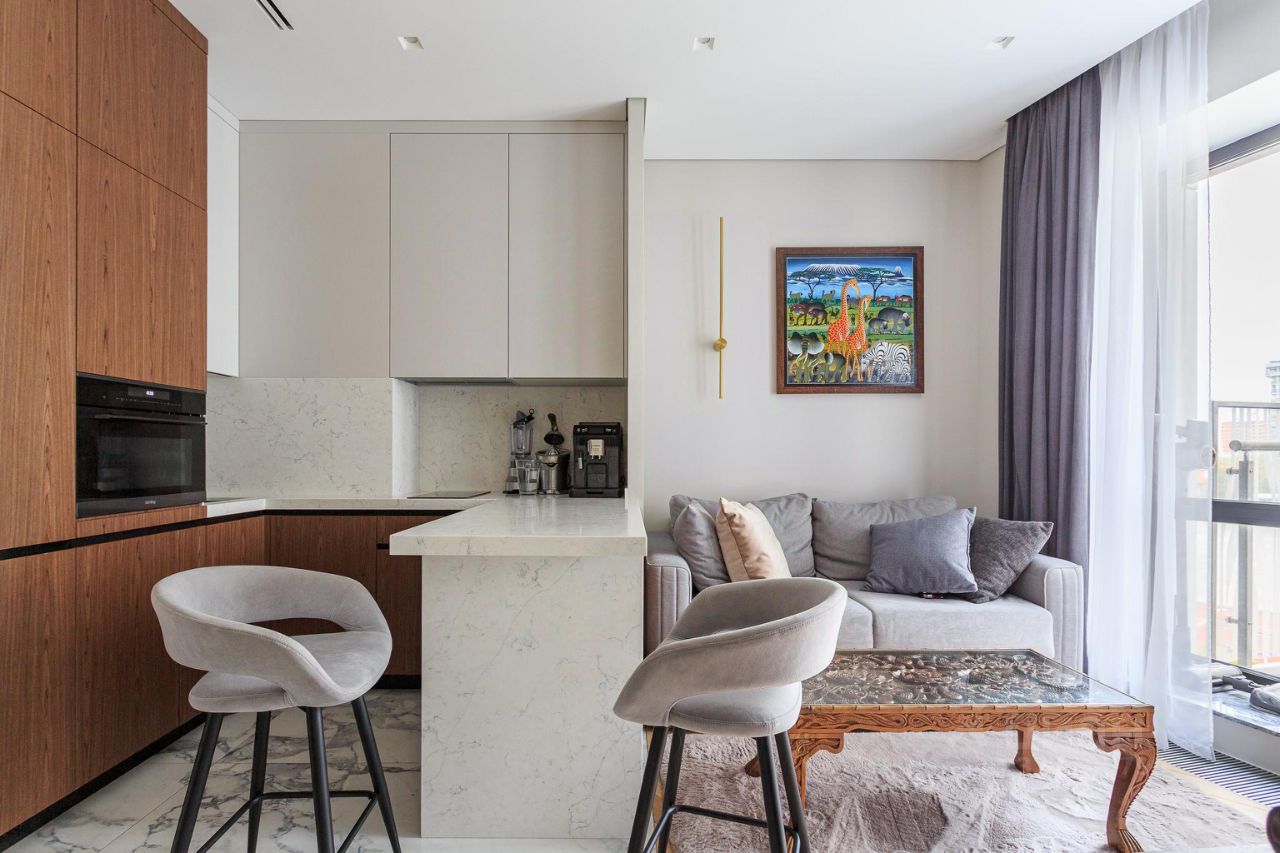 Красивая дизайнерская квартира с прекрасным видом во двор и балконом.