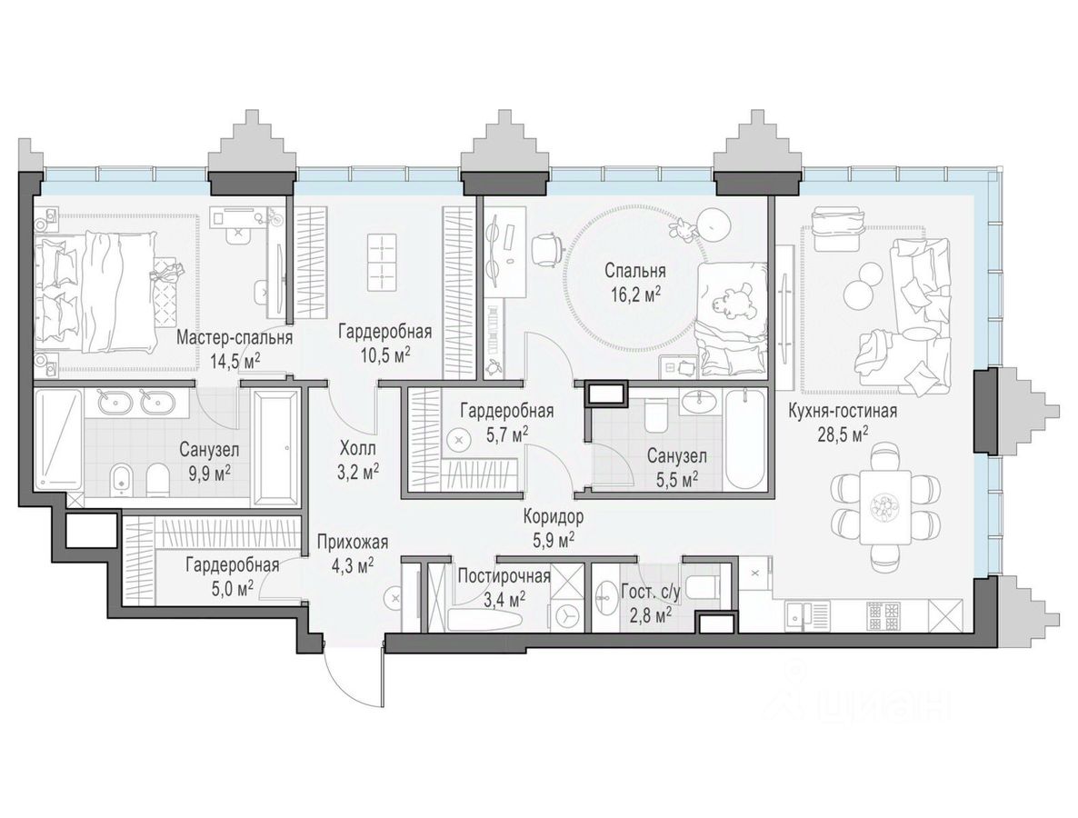 Общая площадь квартиры - 115.60 кв.м.