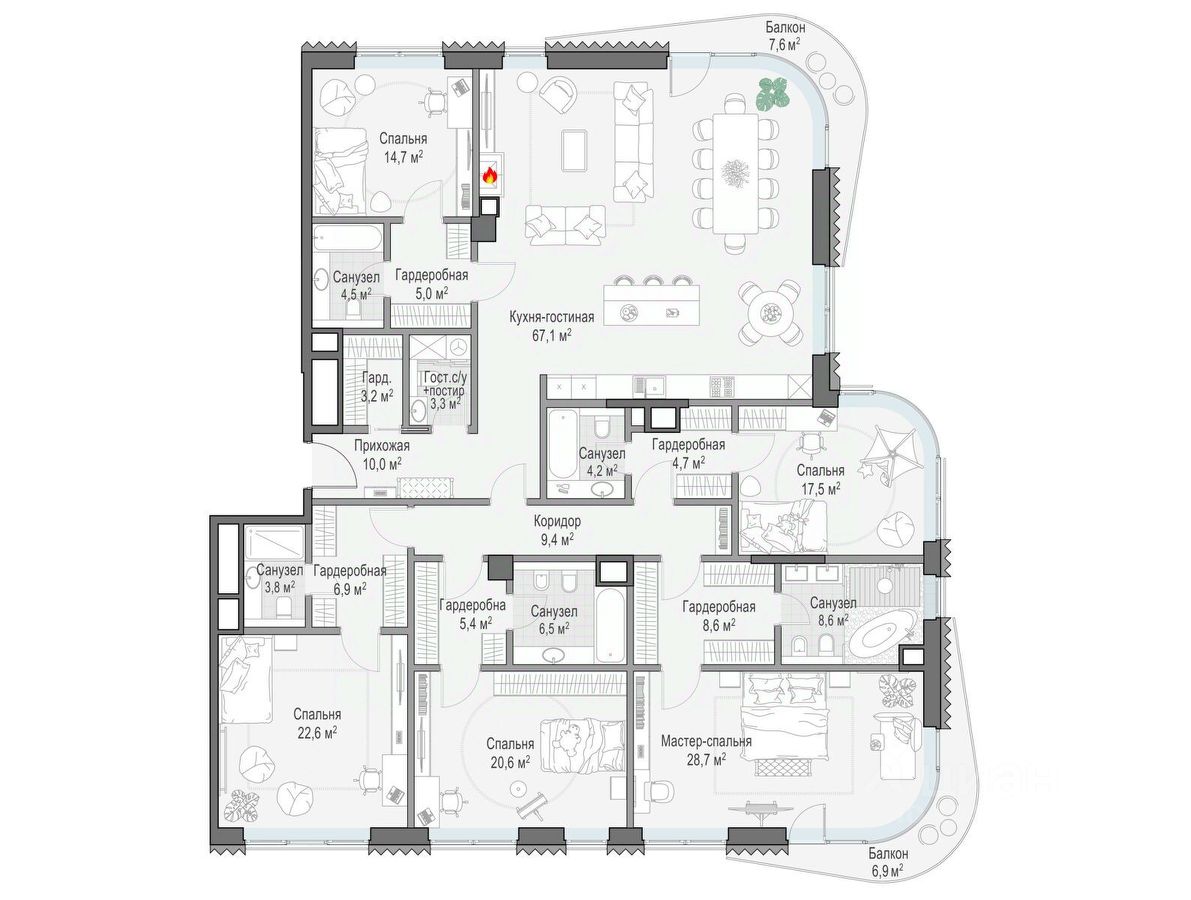 Площадь кухни67,1 м²