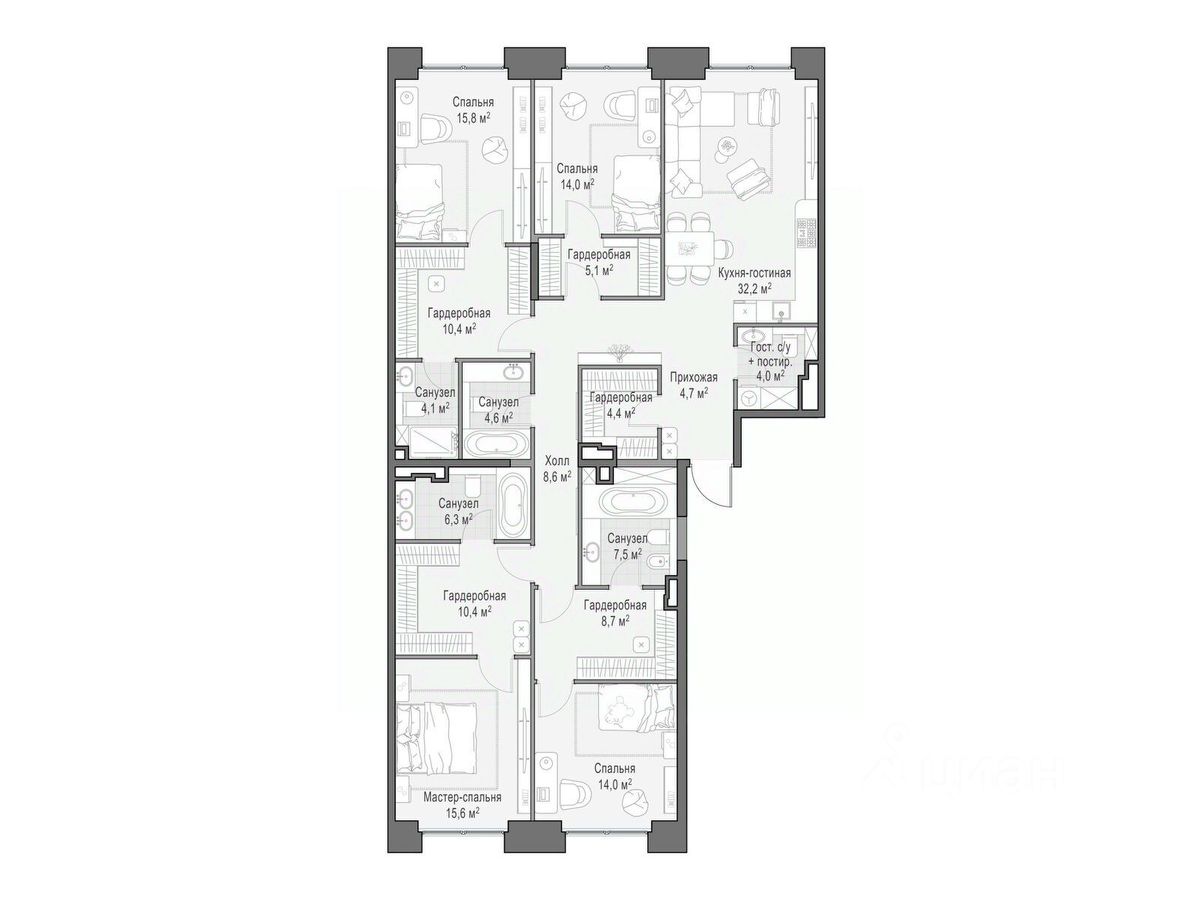 Продается 3-комн. квартира, 173 м²