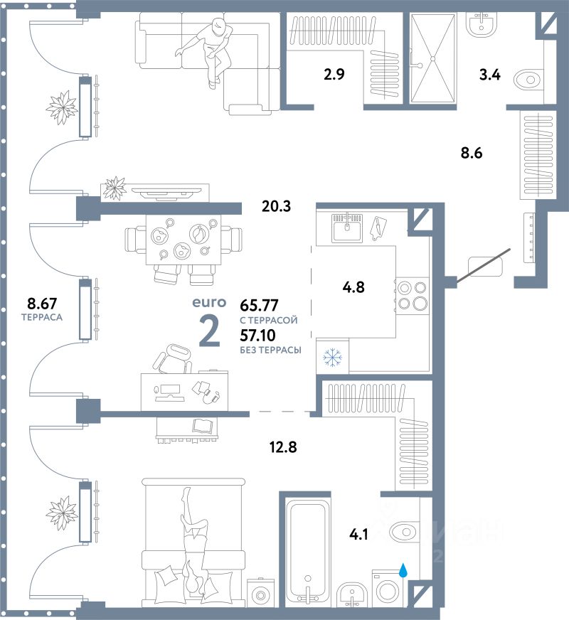 Продаётся 2-комнатная квартира в строящемся доме (Дом 1), срок сдачи: II-кв. 2026, общей площадью 65.77 кв.м., на 8 этаже. Многоэтажные жилые дома с объектами инфраструктуры, расположенные по адресу: г. Москва, внутригородское муниципальное образование Очаково - Матвеевское, ул. Озерная, вл. 42.