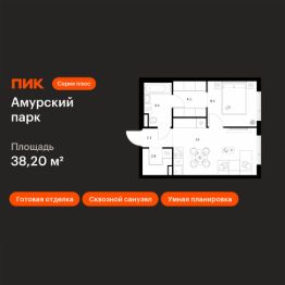 Продаётся 1-комн. квартира площадью 38,2 кв.м на 2 этаже 27 этажного дома (Корпус 4.3, Секция 3) проекта ПИК Амурский парк. Светлый просторный подъезд на уровне земли, функциональная планировка, большие окна, c отделкой.