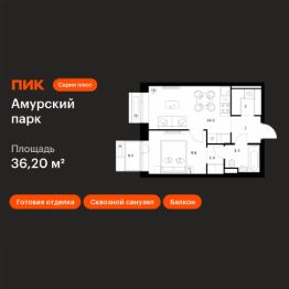 Продаётся 1-комн. квартира площадью 36,2 кв.м на 3 этаже 12 этажного дома (Корпус 4.2, Секция 1) проекта ПИК Амурский парк. Светлый просторный подъезд на уровне земли, функциональная планировка, большие окна, c отделкой.