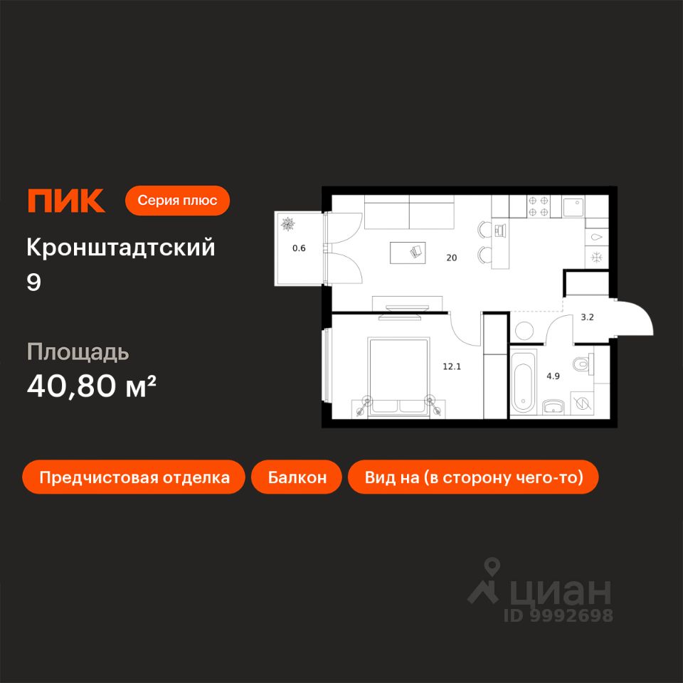Продаётся 1-комн. квартира площадью 40,8 кв.м на 4 этаже 12 этажного дома (Корпус 1.1.2, Секция 2) проекта ПИК Кронштадтский 9. Светлый просторный подъезд на уровне земли, функциональная планировка, большие окна, предчистовая отделка.