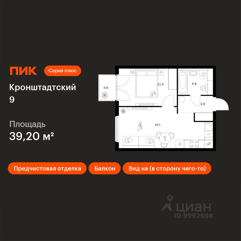 Продаётся 1-комн. квартира площадью 39,2 кв.м на 6 этаже 12 этажного дома (Корпус 1.1.1, Секция 1) проекта ПИК Кронштадтский 9. Светлый просторный подъезд на уровне земли, функциональная планировка, большие окна, предчистовая отделка. Жилой квартал "Кронштадтский 9" возводится в Головинском — в одном из районов с лучшей экологией в Москве. Совсем рядом станция метро "Водный стадион" — до неё 3 минуты пешком. Поездка на машине до Ленинградского шоссе займёт 2 минуты, до ТТК — 10 минут, а до МКАД — 16 минут. Недалеко от жилого квартала находятся парки и пруды — спокойные места для прогулок и отдыха. В "Кронштадтском 9" можно купить квартиру в уже готовом корпусе и сразу получить ключи. В проект входит 10 корпусов с просторными и светлыми подъездами, два детских сада и подземный паркинг. Внутри квартала будут уютные дворы-парки с детскими площадками и местами для отдыха. А чуть дальше, чтобы шум не беспокоил жителей домов, мы построим спортивные площадки. Во всех квартирах в этом проекте предчистовая отделка, с которой легче реализовать ваши дизайнерские идеи. В районе, где строится "Кронштадтский 9", есть всё для комфортной жизни: школы, сады, вузы, магазины и крупные торговые центры "Водный" и "Метрополис". В 15 минутах ходьбы — парк у Головинских прудов, в 18 минутах — парк "Дружба". Оба для прогулок, пробежек и отдыха от дома и работы. Ключевая особенность новых корпусов проекта — это особый архитектурный образ, разработанный бюро М.А.М. Здания привлекают внимание контрастом светлых фасадных поверхностей с тёмными, более детализированными элементами. Архитектурные приёмы формируют связь с городским контекстом: низкоэтажные корпуса естественно вписываются в окружающий ландшафт, в то время как 32-этажная башня добавляет вертикальный акцент, усиливающий общий облик квартала. В "Кронштадтском 9" умные планировки: вы сами выбираете, как их использовать, чтобы ваша квартира была максимально комфортной именно для вас. Например, постирочная может стать студией звукозаписи, а зона для гардероба — кабинетом. В новых корпусах есть квартиры с кухней-нишей, сквозным санузлом и мастер-спальней с собственной ванной. Квартиры продаются с предчистовой отделкой. Это значит, что к моменту получения ключей в доме уже закончатся самые грязные и шумные работы, а вам будет легче реализовать дизайнерские идеи. Рядом с проектом есть всё необходимое. В паре минут пешком — торговые центры "Гавань" и "Водный", а в 7 минутах на машине — большой ТРЦ "Флотилия". В шаговой доступности аптеки и детская городская поликлиника. Доехать до взрослой поликлиники можно за несколько минут. Вокруг несколько интересных мест для прогулок, в том числе с детьми. Можно арендовать лодку или просто понаблюдать за плывущими яхтами и парусниками на Северном речном вокзале, побродить по парку возле усадьбы Грачёвки или сходить в музей охоты и рыболовства. Артикул 967309 (Застройщик АО "Специализированный застройщик МАК8")