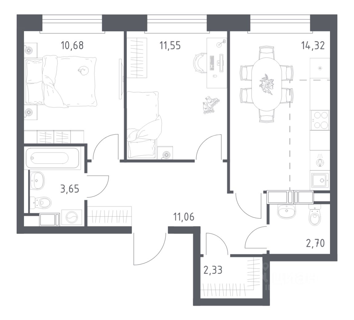 Строим кварталы для жизни с заботой о будущем. Предлагается 2-комнатная квартира комфорт-класса площадью 56,29 кв.м в корпусе 14-2 на 5-м этаже, в жилом комплексе "Эко Бунино".