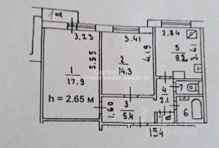 Общая площадь: 53.5 кв.м