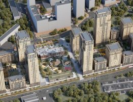 Жилые здания переменной этажности (831 этаж). Фасады облицованы керамогранитом с фактурой камня. Презентабельные входные группы с зеркалами, общественными гостиными. Бесшумные скоростные лифты. Подземный паркинг на 1-м этаже, колясочные, велохранилища и кладовые помещения.