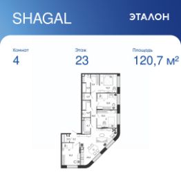 Общая площадь квартиры — 120.7 кв. м, этаж 23 из 24.