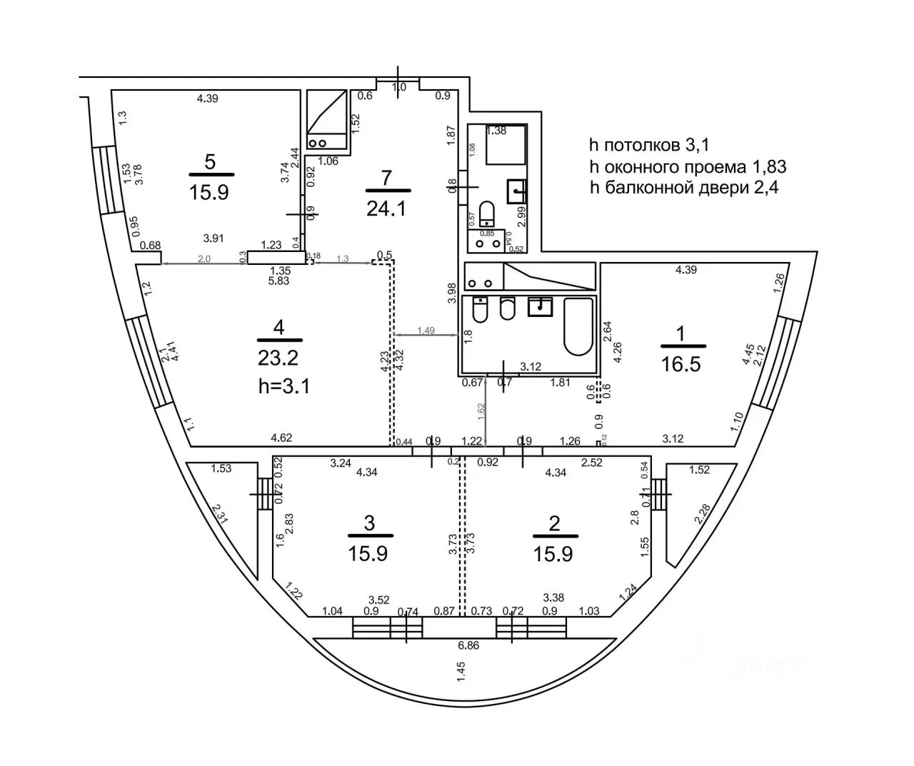 - Высота потолков 3,1 м.;