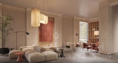 • дизайнерские лобби от бюро ABOVE ARCHITECTURE с панорамными окнами, интерьерами в теплой цветовой гамме и мягкой зоной ожидания располагаются в каждой башне;