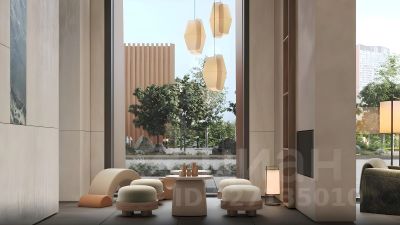 • дизайнерские лобби от бюро ABOVE ARCHITECTURE с панорамными окнами, интерьерами в теплой цветовой гамме и мягкой зоной ожидания располагаются в каждой башне;