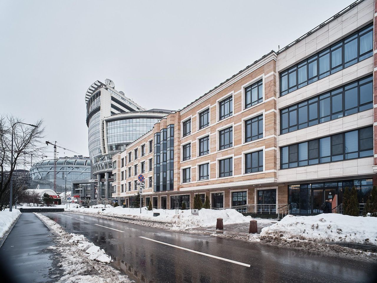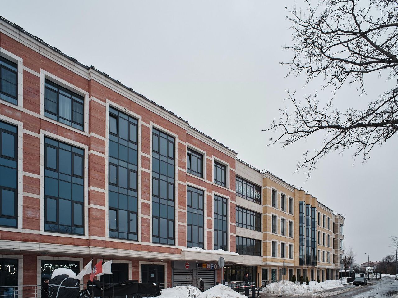 Фасады выполнены из натурального камня. Архитектурная концепция разработана Рикардо Бофиллом — автором знаковых объектов в Европе. В облицовке использованы панно из натурального травертина различных оттенков.