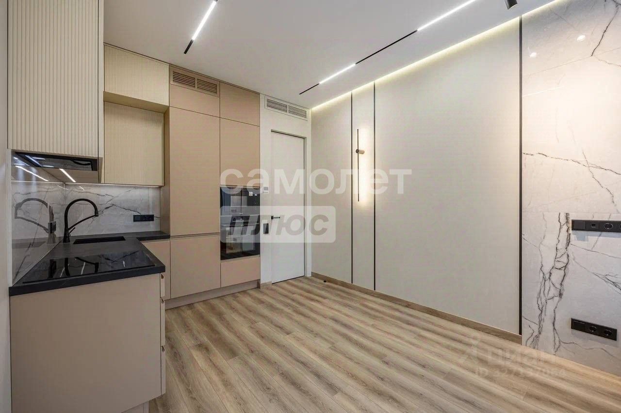 присутствует трековое освещение в кухне-гостиной, установлен встроенный шкаф в спальне.