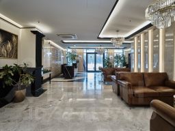 Лобби выполнены с использованием мрамора, оникса, гранита и латуни. Пространство общественных зон подчёркивает статус проекта.
