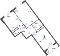 Благодаря удачной планировке (жилая площадь — 39,1 кв. м, площадь кухни — 15,8 кв. м) квартира идеально подойдёт как для молодых семей, так и для тех, кто ценит простор и функциональность.