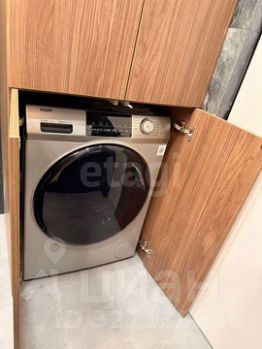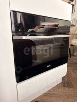 Вся техника установлена фирмы НАIЕR: варочная панель, вытяжка, духовой шкаф с функцией СВЧ, посудомоечная машина, холодильник, измельчитель, стирально-сушильная машина.