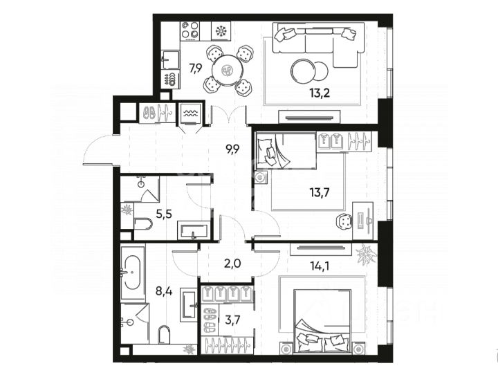 Арт. 131690296 Квартира по переуступке. Можно приобрести по ставке 13.9%.