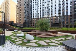 На территории закрытая уличная парковка на 200 машино мест, подземная парковка на 400 мест, видео домофон, видео наблюдение. С территории дома прямой выход в лес, большая огороженная детская площадка.