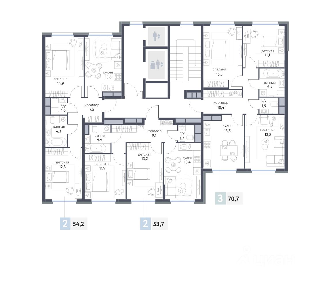 Продаётся просторная 3-комнатная квартира общей площадью 70.7 м² на 8 этаже в новом жилом комплексе "Сиреневый парк", расположенном в Восточном административном округе Москвы на улице Тагильская. Всего 10 минут ходьбы от станции метро "Бульвар Рокоссовского" и одноимённой платформы МЦК.