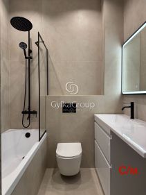 В ходе ремонта использованы качественные материалы, натяжные потолки с теневым профилем еврокраб, треки и весь свет от премиальной фирмы Denkirs; на полу дорогой кварц винил с раскладкой в форме елки; включатели и розетки фирмы Maytoni серия Voltum в черном цвете, качественные и приятные на ощупь; заменена батарея на вертикальную; обои однотонные итальянского бренда; на кухне установлена посудомойка и встроенный холодильник под столешницу-удобно и практично; в санузле установлен теплый пол, инсталляция немецкой фирмы Tece, черная качественная сантехника, встроенный вентилятор в потолок, место под стиральную машину -под столешницей.
