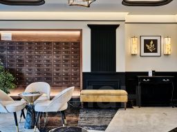 Лобби выполнены с использованием мрамора, оникса, гранита и латуни. Пространство общественных зон подчёркивает статус проекта.