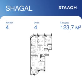 Общая площадь квартиры — 123.7 кв. м, этаж 4 из 15.
