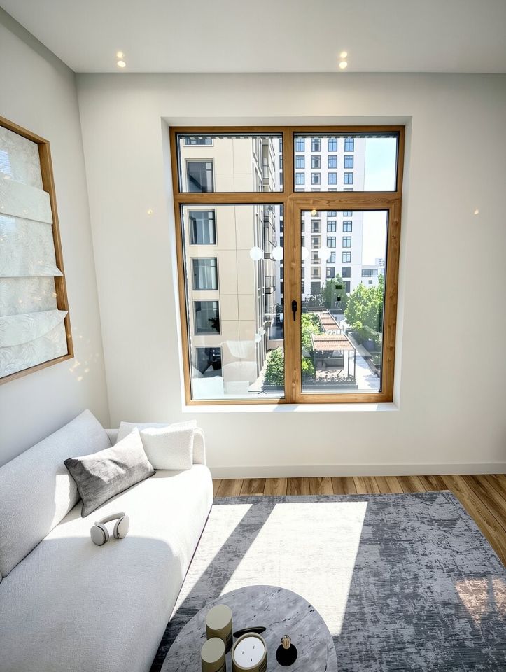 Общая площадь — 52,4 м², высота потолков — 3 м, лоджия с панорамными окнами! Ремонт в стиле white box со стяжкой с шумоизоляцией подходит под любой дизайн!
