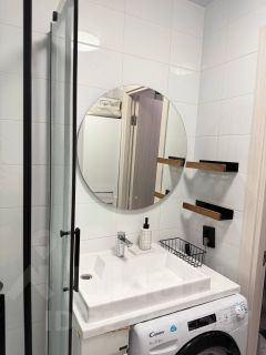 Квартира оснащена вместительным шкафом в прихожей,комодом,зеркалом,двуспальной кроватью (120) с подъемным механизмом,диваном (раскладывается в полноценное спальное место 120), обеденным столом ( раскладывается),два кресла.кухня. В кухню встроены:посудомоечная машина,духовой шкаф, индукционная панель на 2 конфорки,микроволновая печь. Заменена сантехника от ПИК, новый душевой поддон,душевая кабина,унитаз.