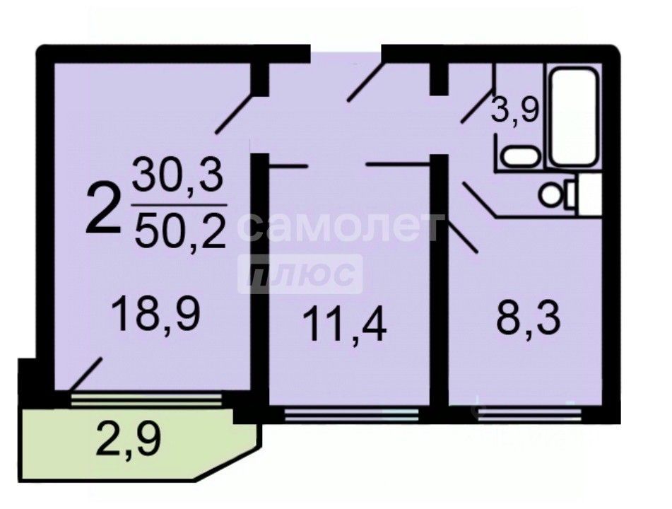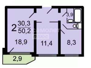 Площадь: 50,9 м2.