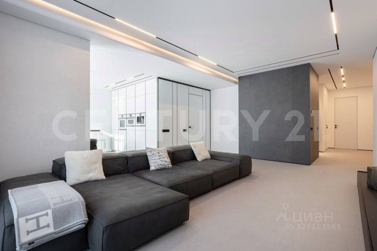 Просторная кухнягостиная с итальянской мебелью Poliform.