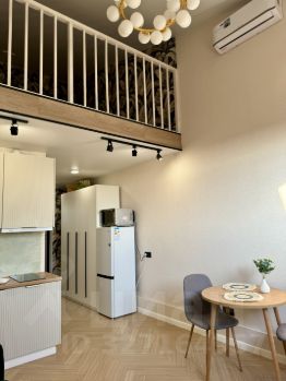 Апартаменты находятся на последнем, шестом этаже, что обеспечивает тишину и отсутствие соседей сверху. Высота потолков впечатляет - целых 6 метров!