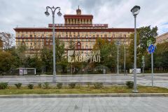 Фасадный сталинский дом с каменными деталями и парадными входами. Толстые стены обеспечивают отличную шумо- и теплоизоляцию. Тихий зелёный двор.