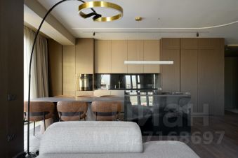 60 м² Это сердце квартиры - просторное и светлое пространство. Идеально для семейных вечеров и приема гостей. В кухне установлены электрическая плита, посудомоечная машина, духовка, микроволновая печь, 2 холодильника. Столешница и остров выполнены из широкоформатного керамогранита, Италия. Вся техника производителя SMEG, Италия.