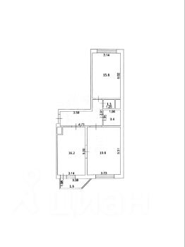 Общая площадь квартиры без учёта площади балкона: 65,6 кв.м. Функциональная планировка: большая просторная прихожая, изолированные комнаты (19,8 и 15,8 кв.м.), кухня: 16,2 кв.м., застеклённая лоджия